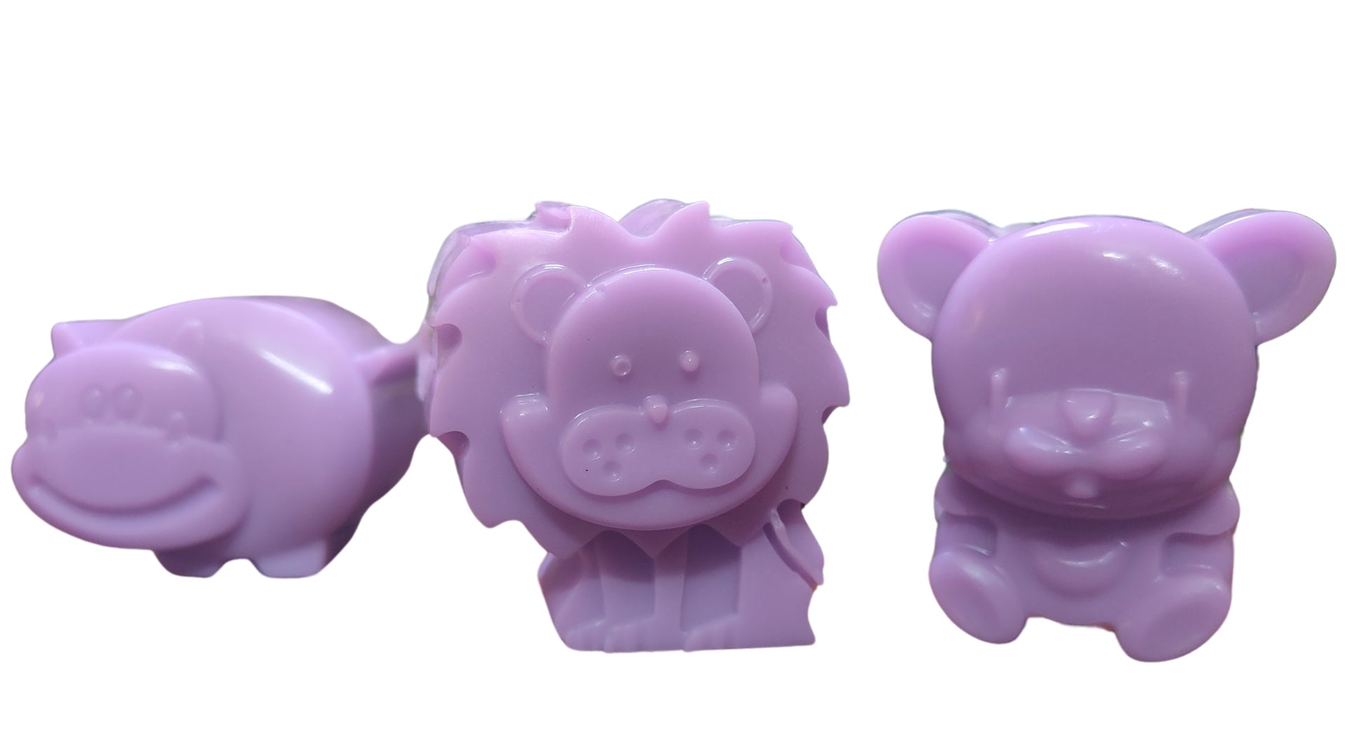 Huge Molds in Cute Shapes for Soap Making --- The 1pc adorable decorating jelly moulds, for each sheet there are 3 animal shaped 6 cavities. The mould with lion, hippopautamus, bear it’s about 9.3”x7.7”, 1.6” tall for each mini shape. With nice figures, they are defined and suitable for a soap.